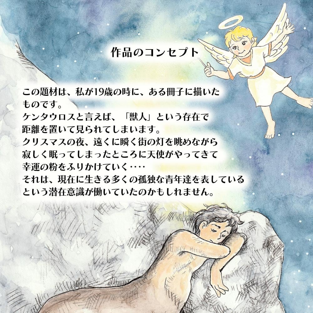 クリスマスの夜、遠くに瞬く街の灯を眺めながら寂しく眠ってしまったところに天使がやってきて幸運の粉をふりかけていく・・・・