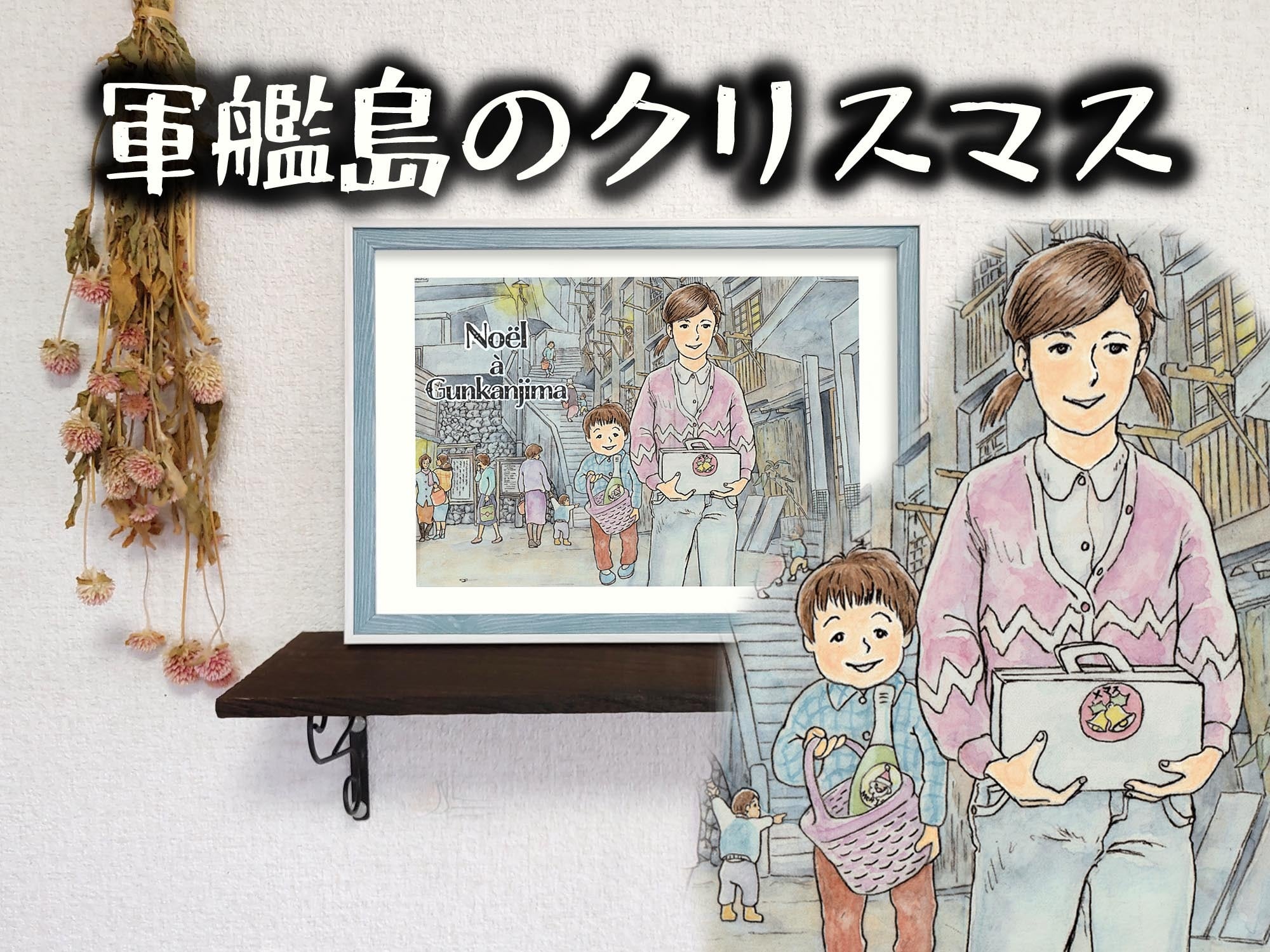 背景は同じ炭鉱の軍艦島(端島)で、「潮降り街」と呼ばれた商店街からケーキとジュースを持ち帰る姉弟の図です。