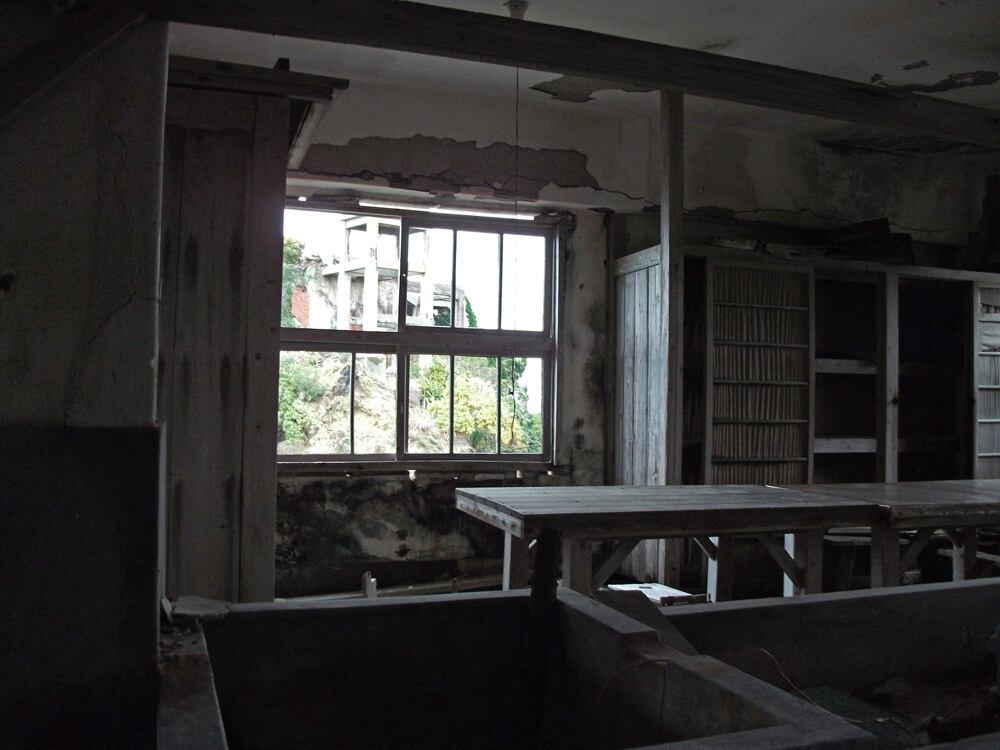 撮影場所:幼稚園内部から見た端島神社。 撮影日:2010年3月3日 軍艦島ツアーガイドをしていた時に、東京のテレビ番組のロケ・クルーと一緒に許可を受けて上陸し、撮影したものです。 従って現在はだいぶ崩落・倒壊が進んでいるものと思われます。建物自体の倒壊の危険もある為、今後内部を撮影することは、ほぼ不可能と思います。 サイズは横長のものが 4000×3000(pix)で、縦長は3000×4000になります。 解像度は 300(dpi)です。