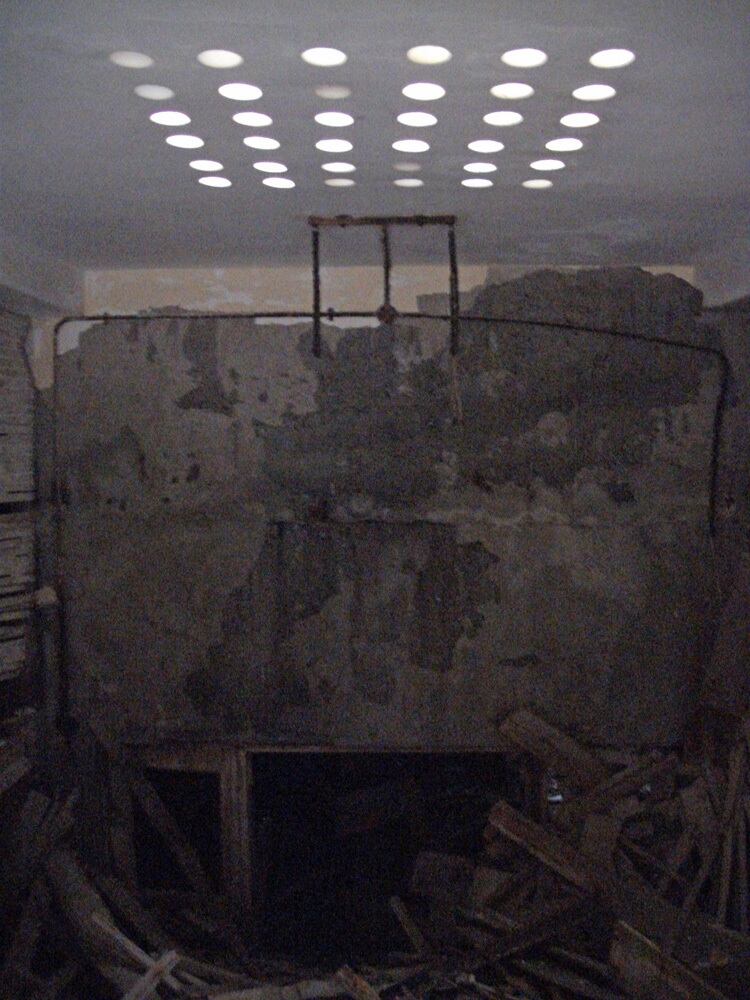撮影場所:地下にある生協売店入り口から下った場所の天井です。採光のために丸い穴があけられています。 撮影日:2010年3月3日 軍艦島ツアーガイドをしていた時に、東京のテレビ番組のロケ・クルーと一緒に許可を受けて上陸し、撮影したものです。 従って現在はだいぶ崩落・倒壊が進んでいるものと思われます。建物自体の倒壊の危険もある為、今後内部を撮影することは、ほぼ不可能と思います。 サイズは横長のものが 4000×3000(pix)で、縦長は3000×4000になります。 解像度は 300(dpi)です。