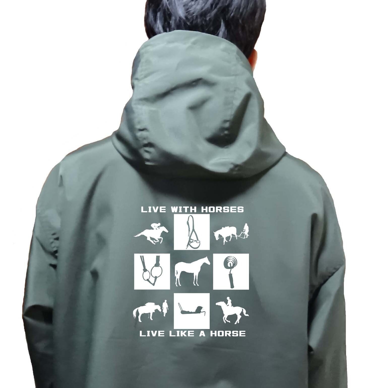 【 この商品は、ご注文を頂いた後の受注生産となります 】 「在庫0」では出品できないため、「在庫〇〇点」となっておりますが、この商品は、ご注文を頂いた後の受注生産となりますので、どうぞご理解のほど、よろしくお願いいたします。納期をご指定されたい方や、できるだけ早く商品を受け取られたい方は、どうぞ事前にご連絡くださいませ。 【 デザインについて 】 デザインは、様々な「馬を愛する人のためのデザイン」で、「乗馬」「競走馬」「農耕馬」「荷運び馬」のシルエットと馬を世話するための道具のシルエットが配置されています。 「LIVE WITH HORSES(馬たちと共にいきる)」「LIVE LIKE A HORSE(馬のように誠実に生きる)」という言葉が添えられています。 人と馬がお互いにリスペクトしながら、馬と共に生きていくという姿勢に対し応援を込めたデザインです。 【 ハンドクラフトについて 】 これまでメーカーに外注していると、お客様にとっては、かなり高額になってしまうと感じました。 クオリティはそのままで、何とかコスパを上げられないかと思案し、プロ仕様の転写シートだけをメーカーで作成して、ハンドメイドで制作したところ、外注と全く遜色ないクオリティの商品ができる上に、価格を外注より1,000円~1,500円くらい下げることができることがわかりました。 またハンドメイドとした方が、プリント位置を変えたり、プリント数を増やしたり、オブジェクトの大きさを変えたりなど、細やかなニーズにお応えすることも可能であることがわかりました。 欠点は、専用シートはメーカーしか製造するノウハウがありませんので、シートの在庫が無い場合、お時間を頂くことになります。 【 返品返金/交換について 】 制作には神経を使っておりますが、どうしても不良品をお届けしてしまう可能性もございます。商品到着後、欠陥品、不良品、あきらかに見本と違うと判断された場合には、即刻、返品返金あるいは、交換に応じさせていただきます。 その場合は、商品到着後から一か月以内にご連絡をお願いいたします。また、できましたら不良個所を撮影した画像をご添付いただき、どのような不都合であるのかを教えて頂けましたら、大変有難いです。今後の改善に役立てたいと思います。 【 サイズ(男女兼用) 】 M L XL 2XL ※サイズについて販売サイトからのレビュー ◎とても着やすくて、意外に暖かかさもありとても満足しております。 身長176でXLを購入しましたが、着丈もいい感じです。 幅広にも余裕があるので中は着込んでも大丈夫です。 ◎身長165cm、体重55㎏の息子にLサイズ購入。 少し大きいかと思ったが、身丈、袖丈が丁度いい長さなので、大きすぎる感じはしない。 ◎155cm、コロコロ女子。ダメもとで買ってみたのですが、これが良いんです。 メンズLサイズでバッチリです。少し大きめくらいがおすすめです。 縫製がしっかりしています。内ポケットもあります。なによりリーズナブル!買って正解でした!欲を言えばフードがもう少し大きいと良いと思いました。 サイズにつきましては、サイズ・モデルの画像、「お客様の声」をご参考にされてください。サイズや商品について不安な点などありましたら、どうぞお尋ねください。 【 カラー 】 ダークグリーン、ブラック、チャコール、ネイビー、オイスターベージュ (5色) 【 ギフトラッピング 】 送付方法(クリックポスト)に規格制限があるため、PP袋にシールという、非常に簡素なラッピングのみ、無料にてご対応いたします。 【 素材 】 ポリエステル 100% 【 メーカー 】 W wonyo #馬デザイン #馬グッズ #馬パーカー #馬ジャケット